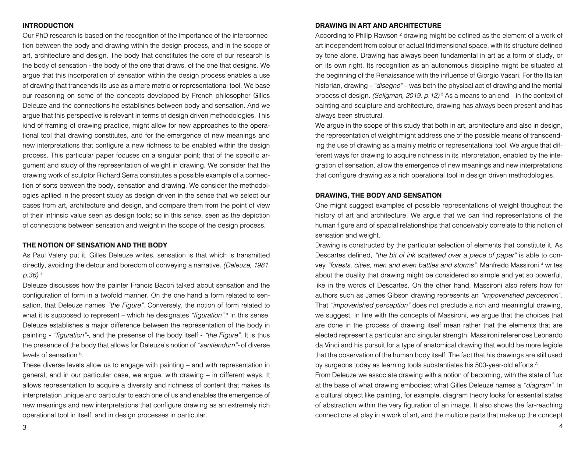 “Sensation and weight. A study on the drawing of Richard Serra”, full paper for the conference CA2RE, Hamburgo, 2021.
