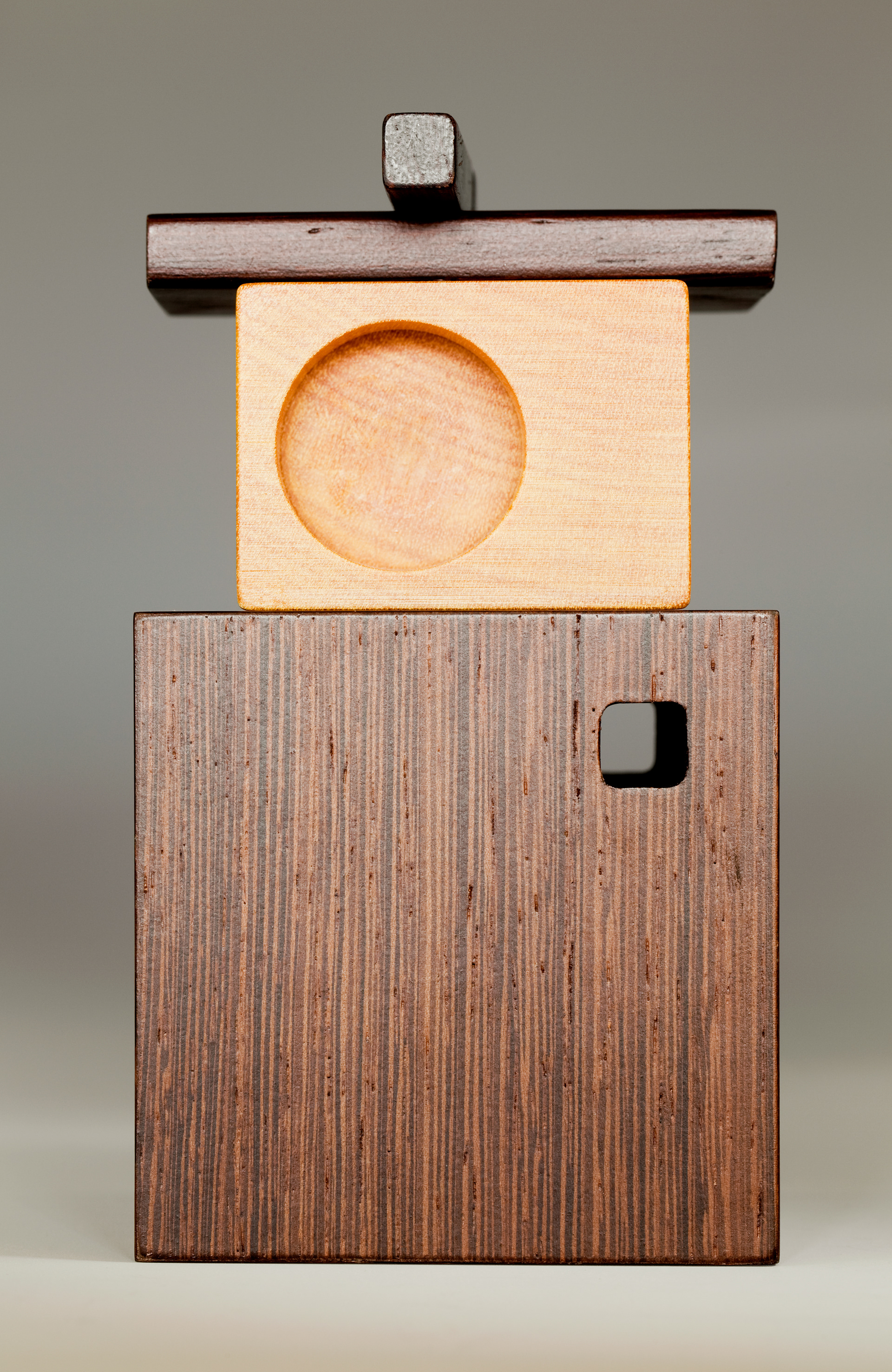 RG03a. RG03a is a wooden cube designed to conceal a precious object. Each piece is unique being laser engraved with design authorship, production and an individual edition number. The piece takes inspiration from traditional Japanese secret boxes. RG03 is a collection from the architect and designer for SPSS, Portuguese fabricators of furniture and joinery for architects including Álvaro Siza and Eduardo Souto Moura. The original piece, RG03a, is a wooden box (76x 76x 76mm) of wenge comprising four elements, one of them being at the heart of the block holding the precious object which is formed from satinwood.